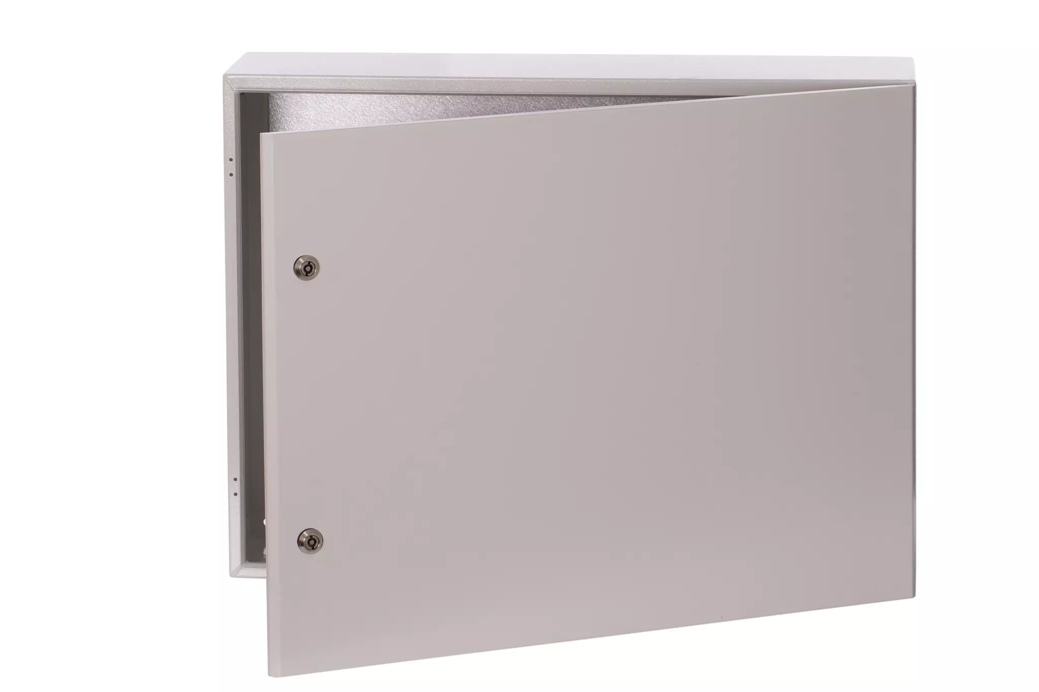 Obudowa hermetyczna wnętrzowa z płytą montażową ocynkowaną 2mm i zamkiem na klucz piórkowy otwarte środek
