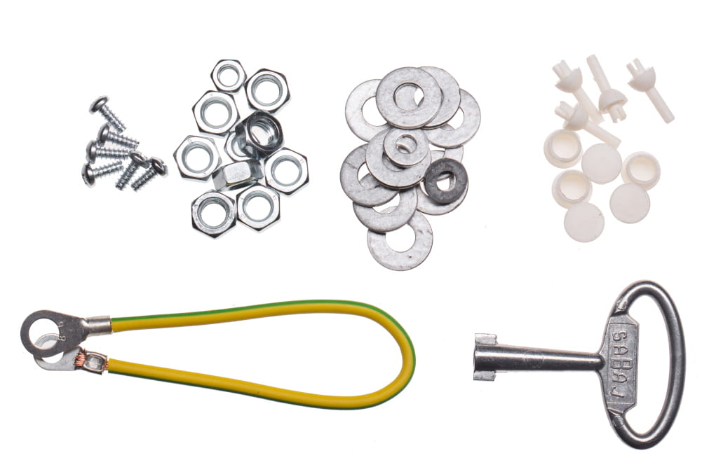 - Zestaw montażowy (wkręty, nakrętki, podkładki, naklejki, zaślepki)