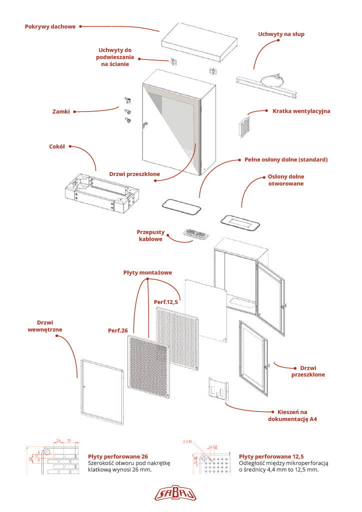 - Wykonanie z blachy stalowej ocynkowanej DC01 malowanej metodą elektrostatyczną