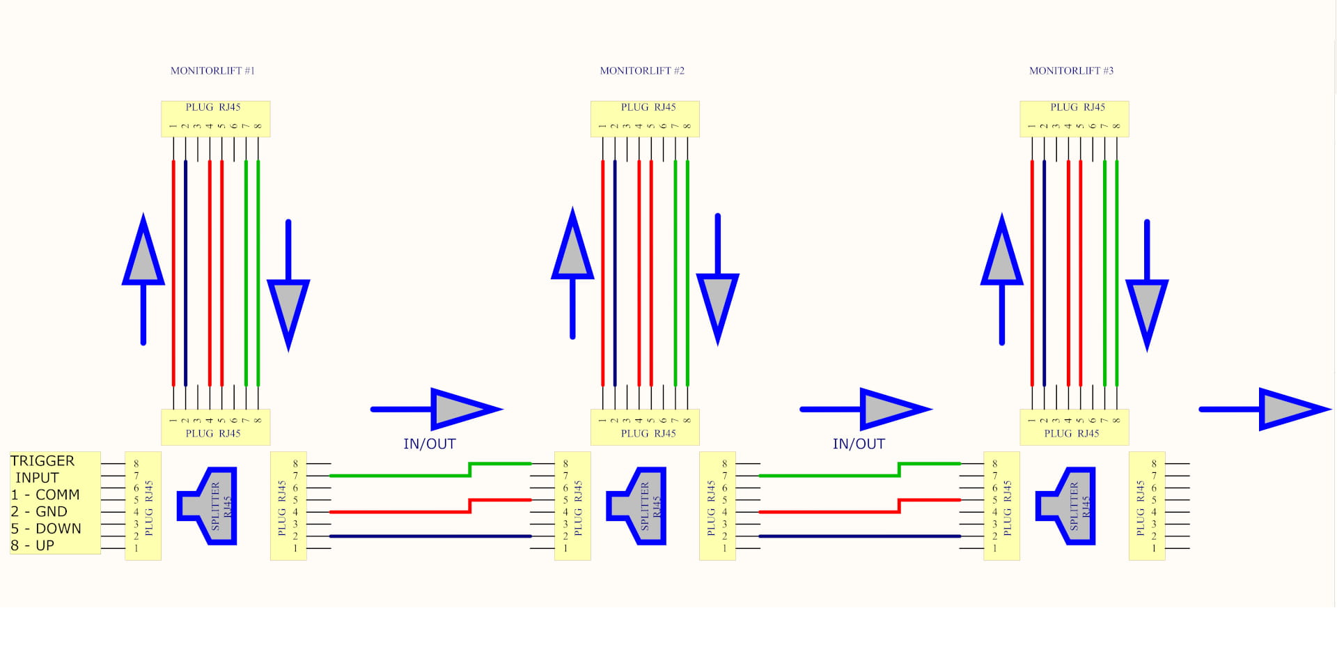 - Łączenie w szereg – możliwość sterowania kilkoma podnośnikami równocześnie.