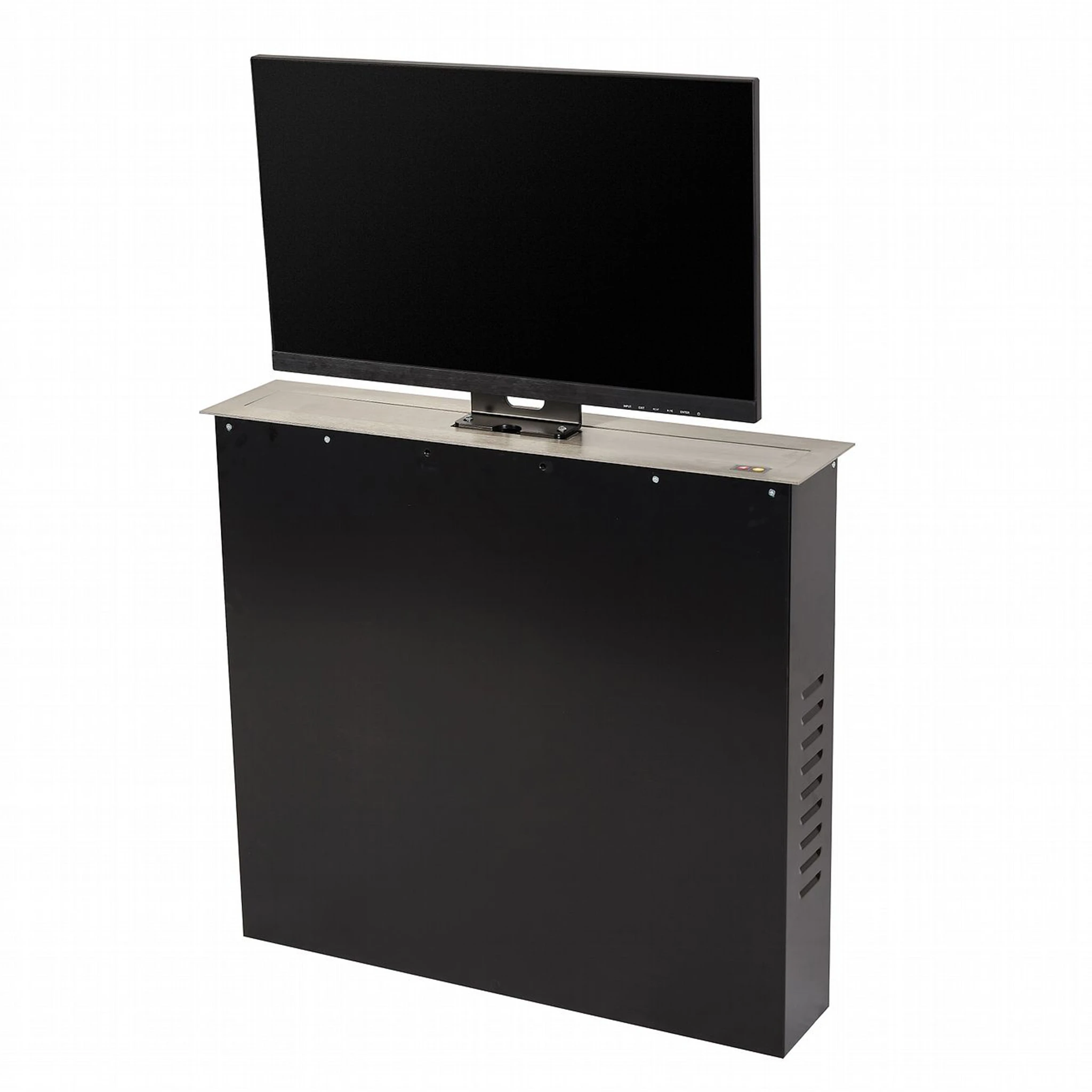 Dzięki temu rozwiązaniu ekran pozostaje ukryty w meblu, zachowując estetykę i funkcjonalność przestrzeni. Idealne do sal konferencyjnych, biur, szkół i nowoczesnych wnętrz domowych.