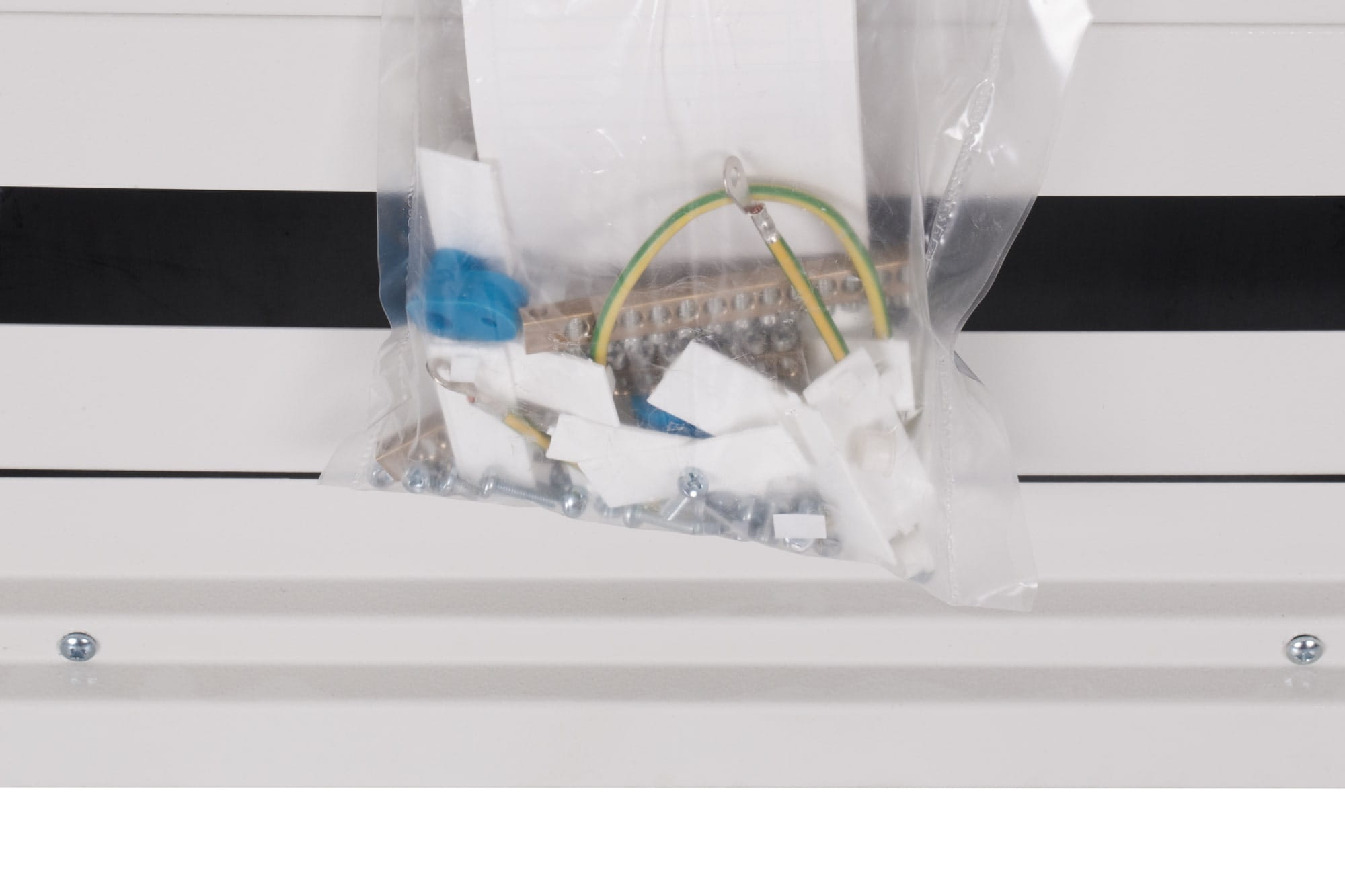 Wykonanie: Wykonana z blachy stalowej o grubości 0,8 mm, zabezpieczona ochronną powłoką lakierową w kolorze białym RAL 9003, nakładaną metodą elektrostatyczną. Nasza rozdzielnica RP-3 to połączenie trwałości i estetyki.