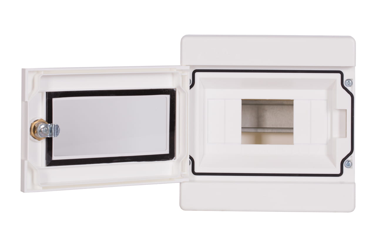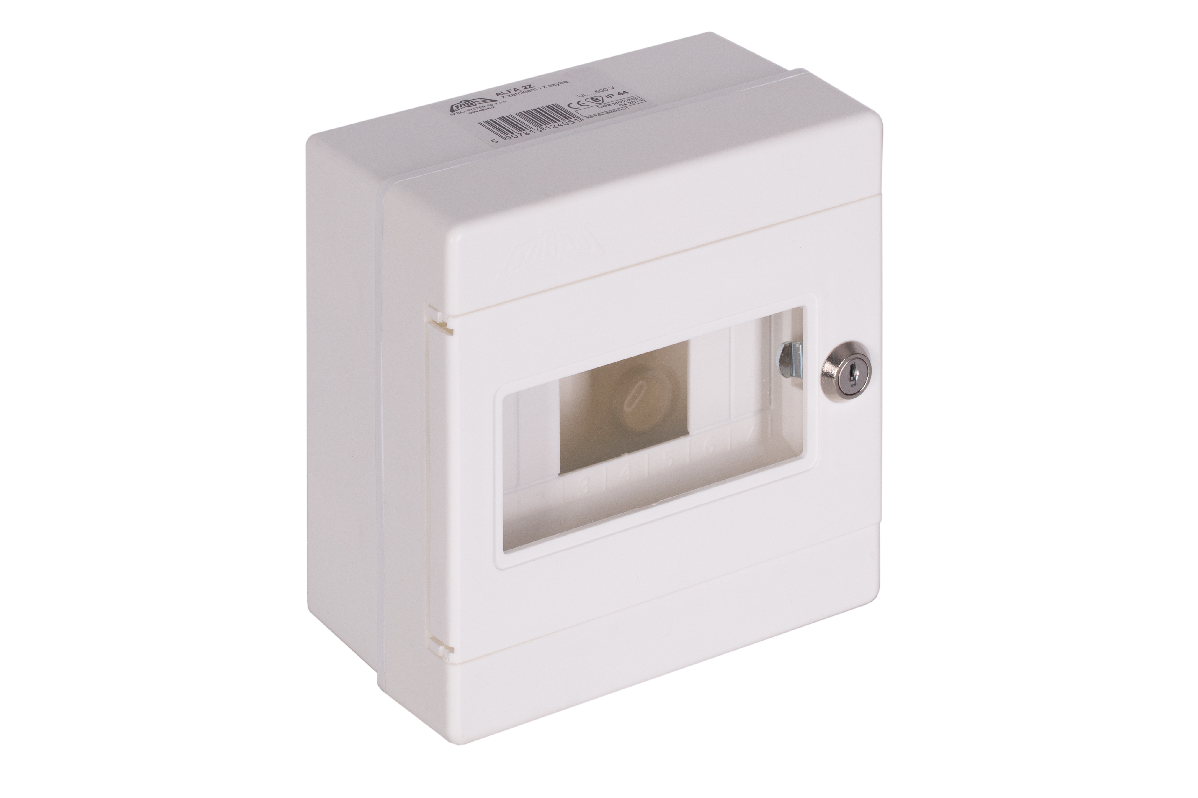 Rozdzielnica natynkowa modułowa 7 modułów IP44 180x180x100 Biała z zamkiem i szybą ALFA 7S ZSZ