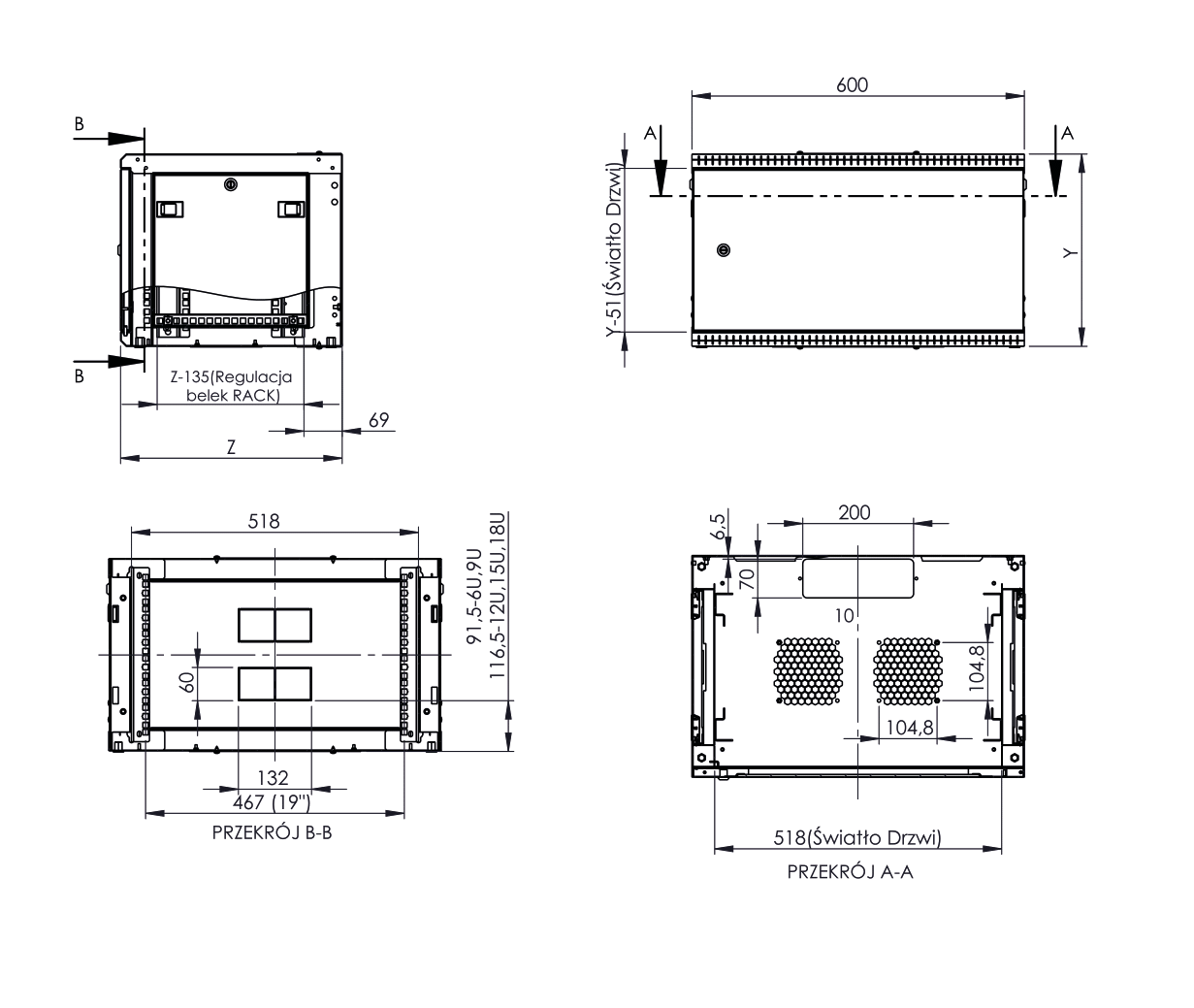 Szafa rack wisząca 19" 9U/600mm marki Sabaj to praktyczne rozwiązanie do organizacji i zabezpieczenia sprzętu sieciowego, teleinformatycznego i monitoringu. Dzięki otwieranym ścianom bocznym umożliwia łatwy dostęp do urządzeń i wygodne zarządzanie okablowaniem. Sprawdzi się idealnie w biurach, serwerowniach, punktach dystrybucyjnych oraz innych przestrzeniach o ograniczonej powierzchni. Konstrukcja umożliwia montaż szerokiej gamy akcesoriów, takich jak półki rackowe, panele wentylacyjne, grzałki, termostaty, prowadnice kablowe, profile montażowe i inne elementy wspierające prawidłowe działanie i chłodzenie urządzeń.