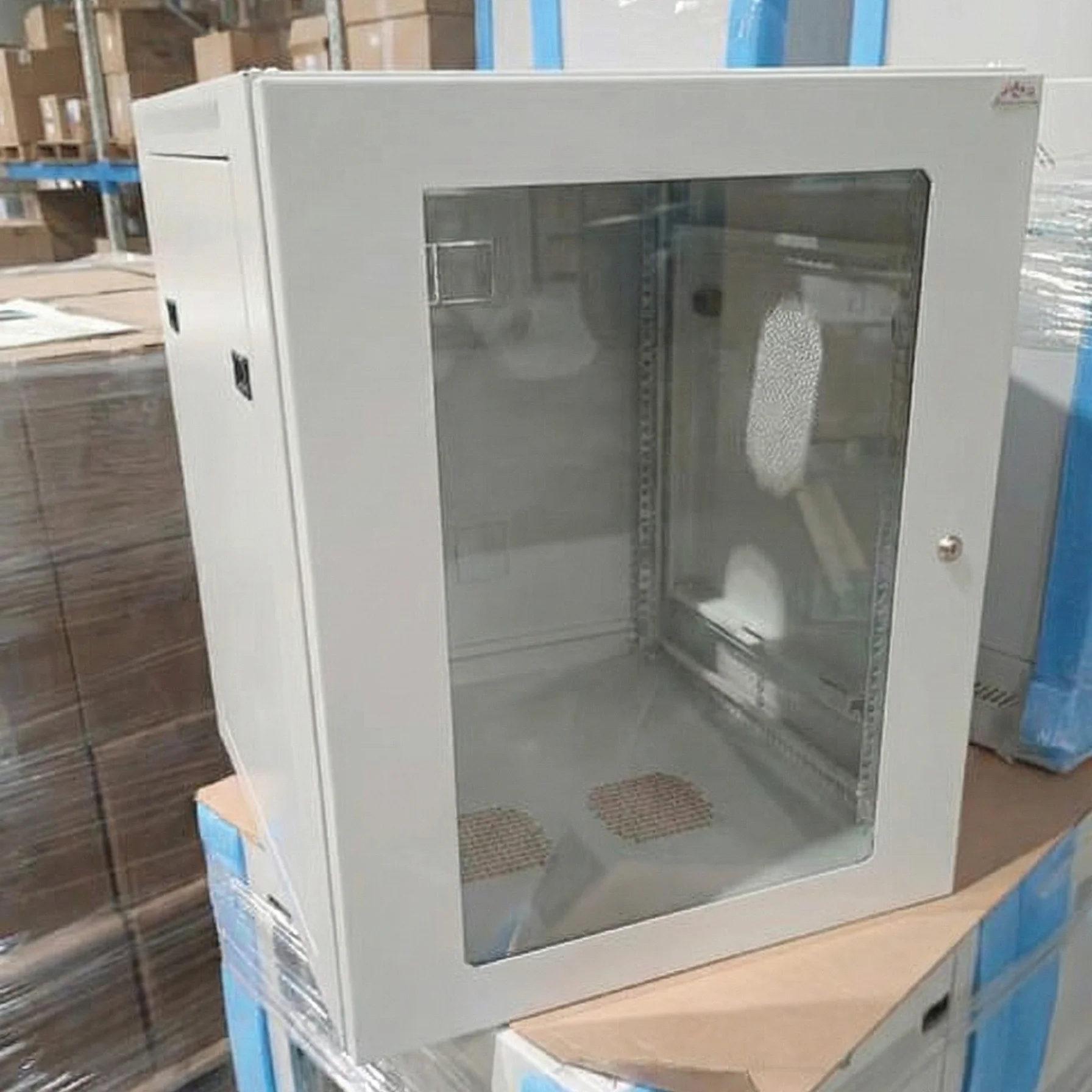 Unikalną cechą tego modelu 600x600 mm są w pełni otwierane i demontowane boki, co jest nieocenionym ułatwieniem podczas montażu i konserwacji urządzeń w ciasnych przestrzeniach. Frontowe drzwi wyposażone w szybę pozwalają na bieżącą kontrolę stanu diod i wyświetlaczy zamontowanego sprzętu, łącząc estetykę z funkcjonalnością.