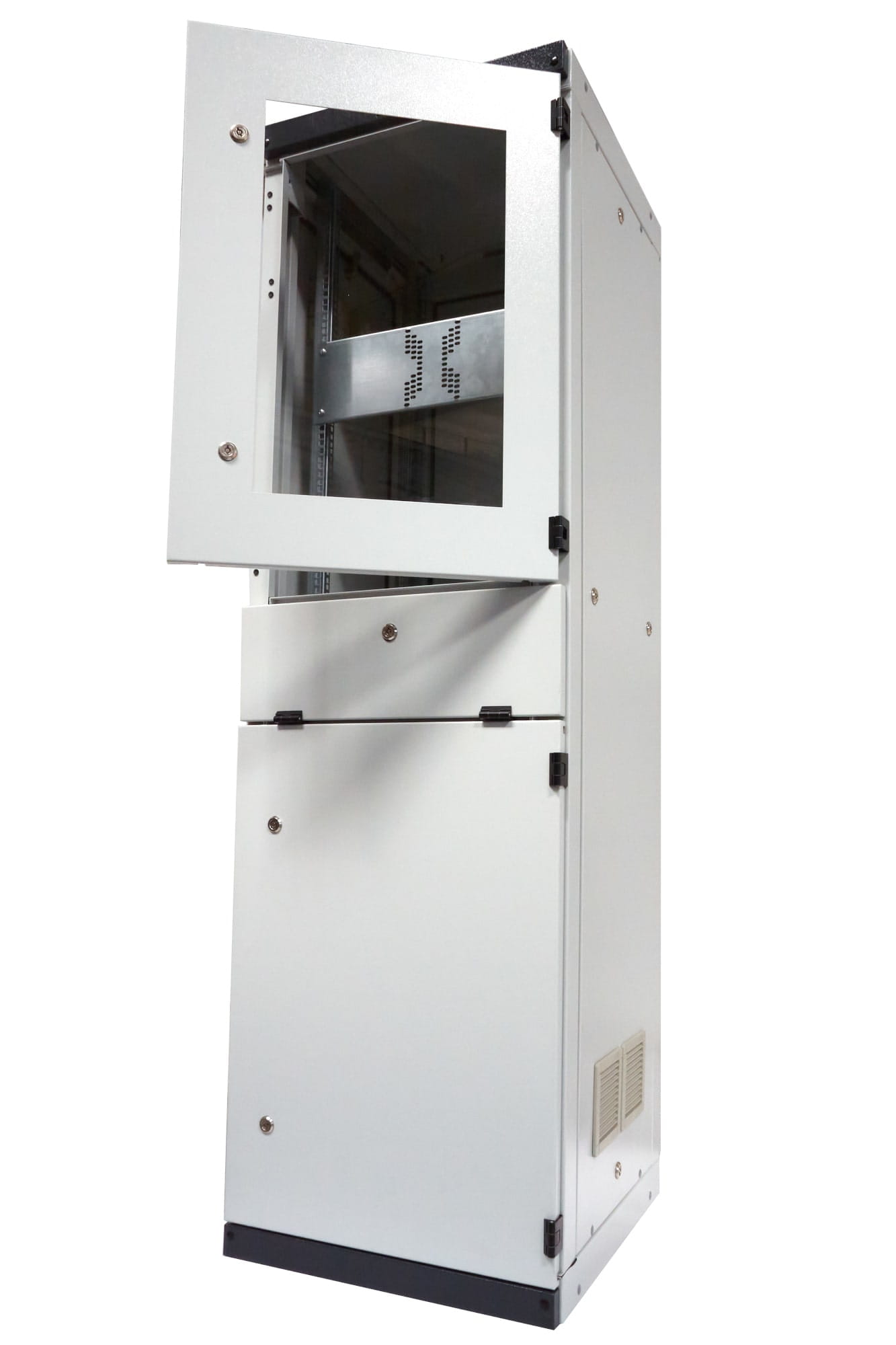 Klimatyzator do szaf sterowniczych / do szaf rack. Montowany na ścianie bocznej lub na drzwiach. Zapewnia skuteczne chłodzenie wnętrza szafy, doskonale regulując temperaturę i utrzymując optymalne warunki pracy zamontowanego sprzętu, zapewniając bezawaryjność działania dla twojej firmy czy stanowiska pracy na wiele lat.
