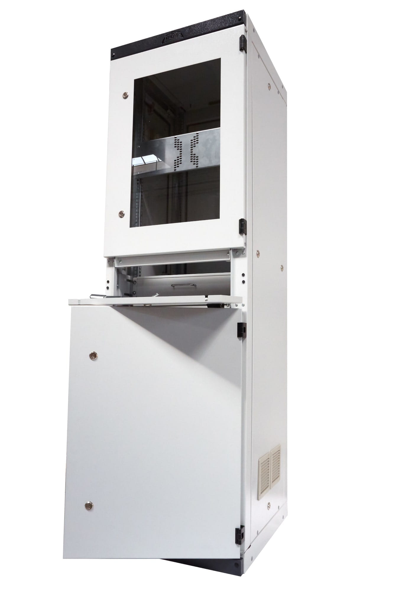 Została podzielona na trzy niezależne części, górna zamykana przeszklonymi drzwiczkami służy do montażu monitora LCD. Dolna zamykana pełnymi drzwiczkami służy do bezpiecznego przechowywania jednostki PC, możliwe jest również zamontowanie w niej dodatkowe układu chłodzącego.