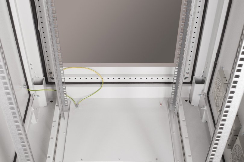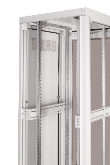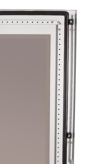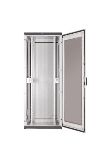 Szafa do montażu samodzielnego. Zestaw składa się z podstawy, dachu, słupków zewnętrznych, ścian bocznych, drzwi oraz osłon, elementów montażowych, 4-ech szyn rack, instrukcji montażu. Po poprawnym złożeniu klasa ochrony IP 55. Wszystkie potrzebne uszczelki znajdują się w zestawie.