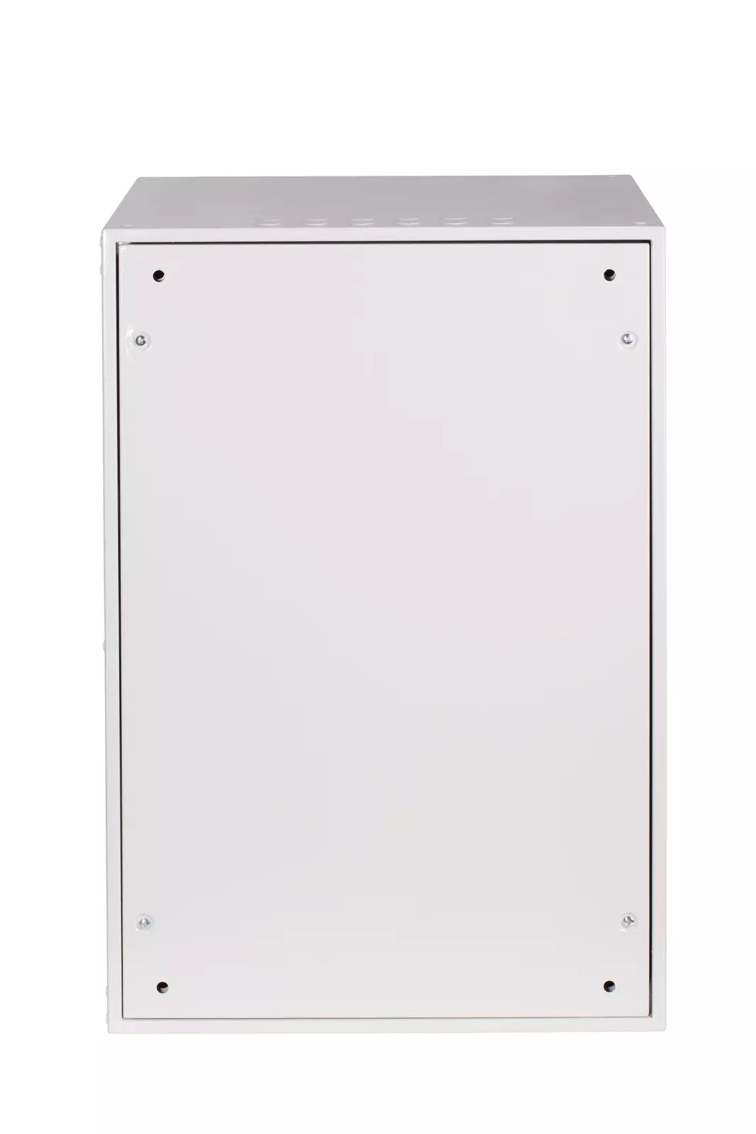 Obudowa wykonana została z blachy stalowej DC01 malowanej proszkowo na kolor RAL 7035, co zapewnia odporność na korozję i estetyczny wygląd. Drzwi wyposażono w poliuretanową uszczelkę, a konstrukcja spełnia normę szczelności IP54, chroniąc sprzęt przed kurzem i wilgocią.