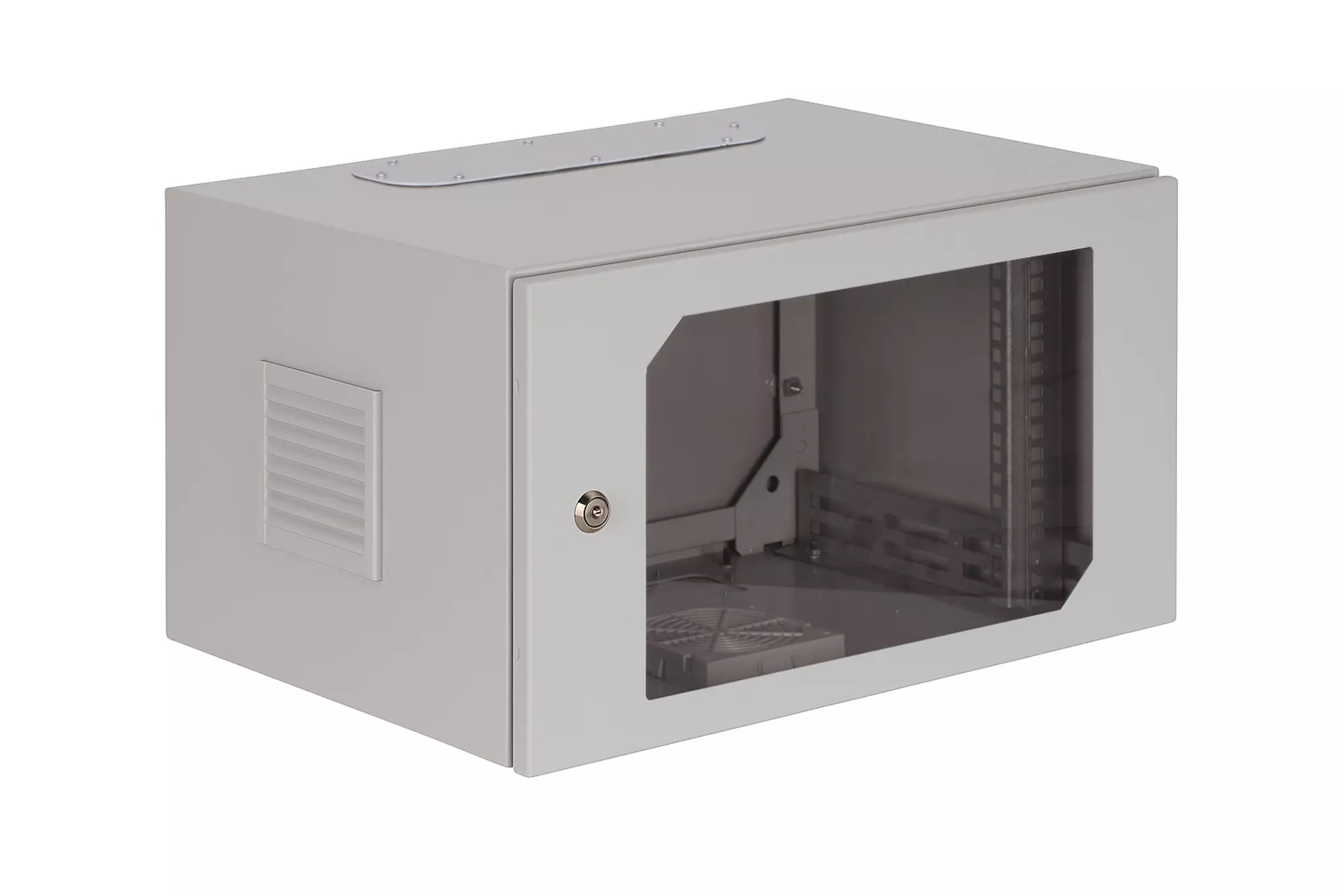 Szafa wisząca rack SWK 19" 6Ux600 IP54 Ściany boczne pełne Drzwi przeszklone Szara Wewnętrzna SWK19-6U-60-DS-W