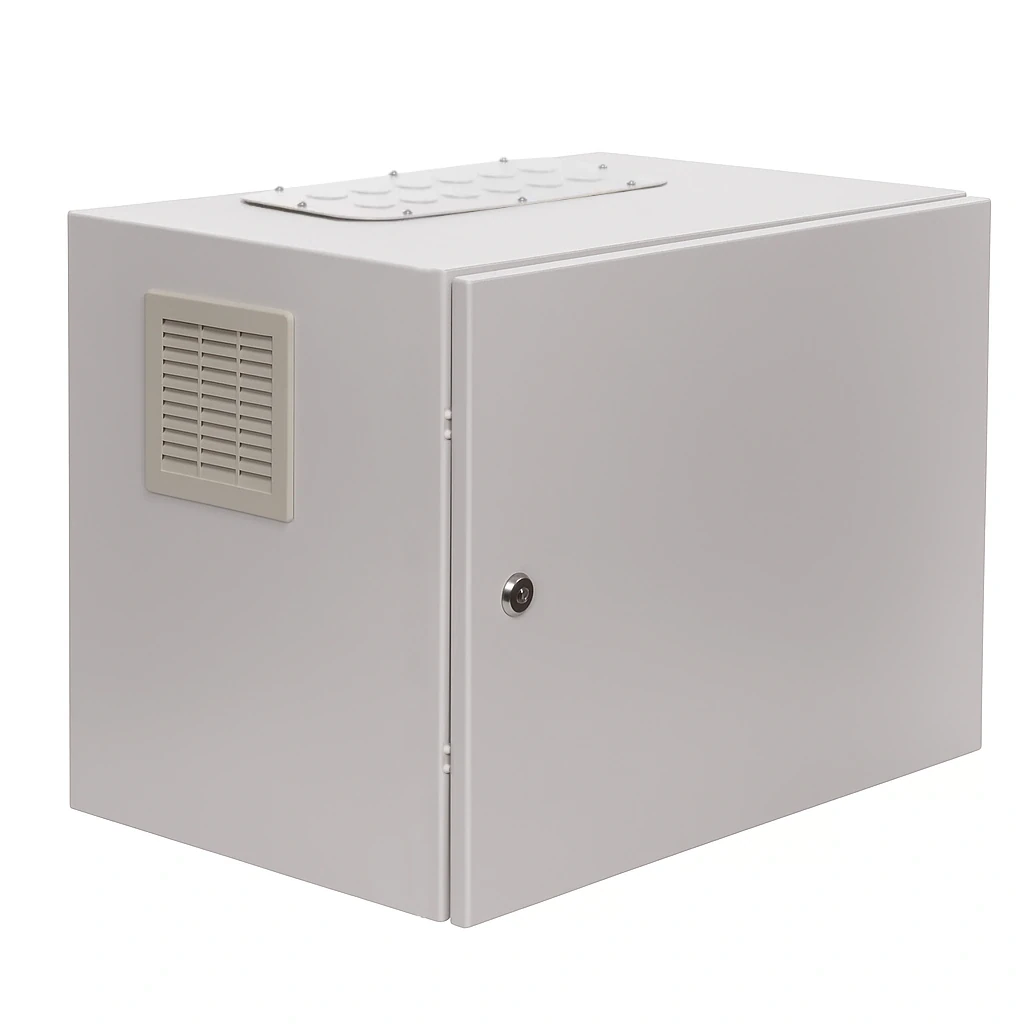 Obudowa wykonana została z blachy stalowej DC01 malowanej proszkowo na kolor RAL 7035, co zapewnia odporność na korozję i estetyczny wygląd. Drzwi wyposażono w poliuretanową uszczelkę, a konstrukcja spełnia normę szczelności IP54, chroniąc sprzęt przed kurzem i wilgocią.