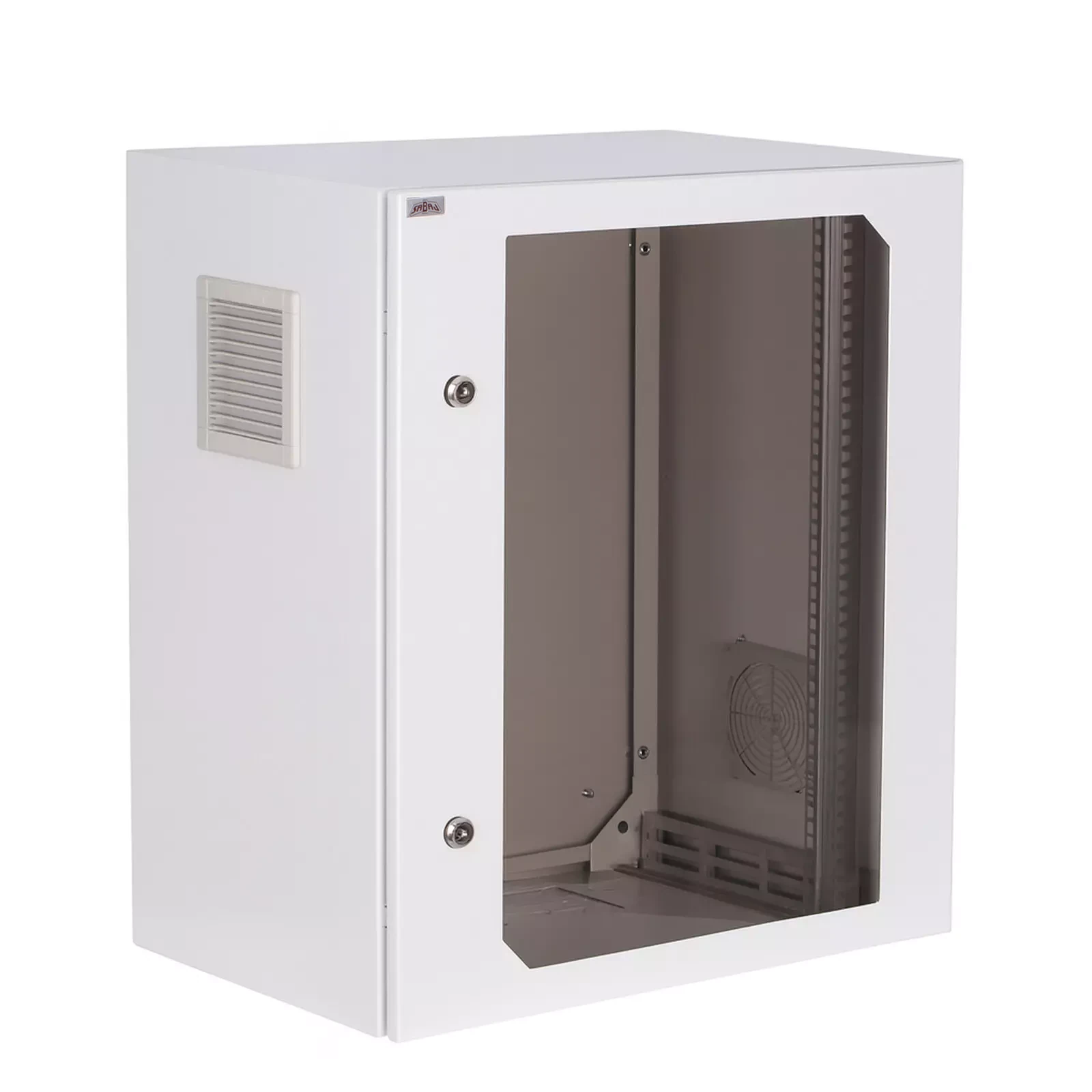 Szafa wisząca typu SWK 18U/400 z drzwiami przeszklonymi, wersja do montażu zewnętrznego.