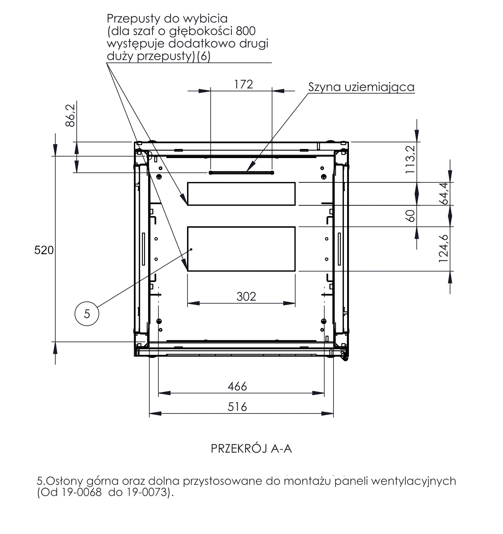 - przepusty kablowe na dolnej i górnej płycie (przystosowane pod przepusty szczotkowe)