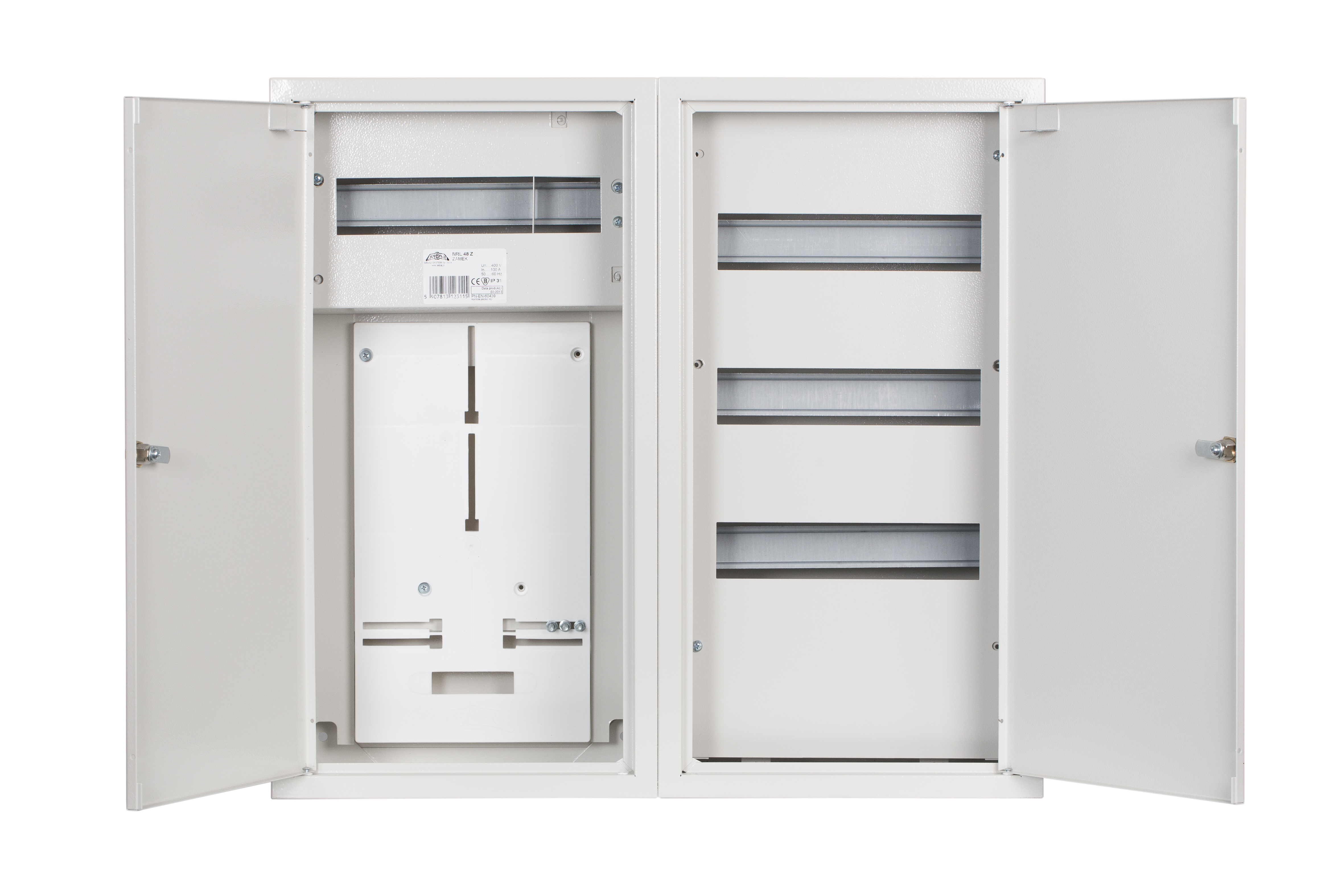 Wnętrzowe rozdzielnice nN, przeznaczone do instalowania liczników trójfazowych oraz czterdziestu ośmiu zabezpieczeń.