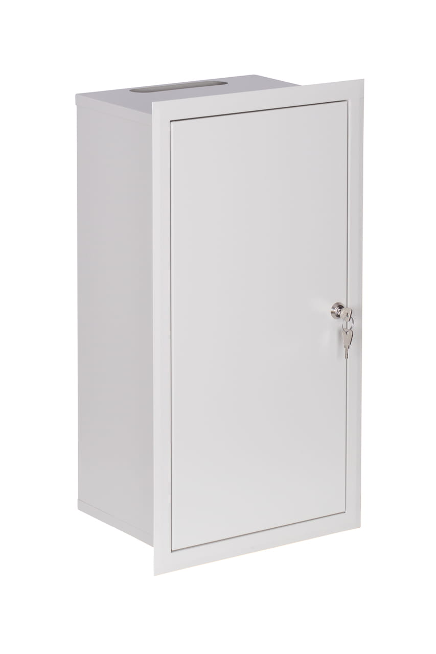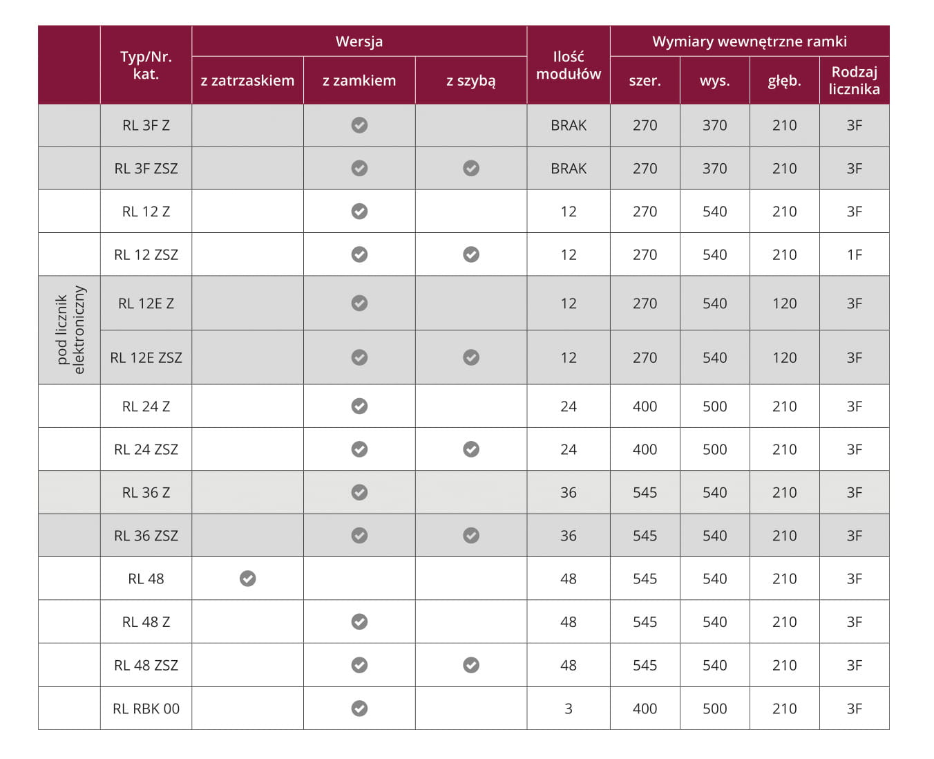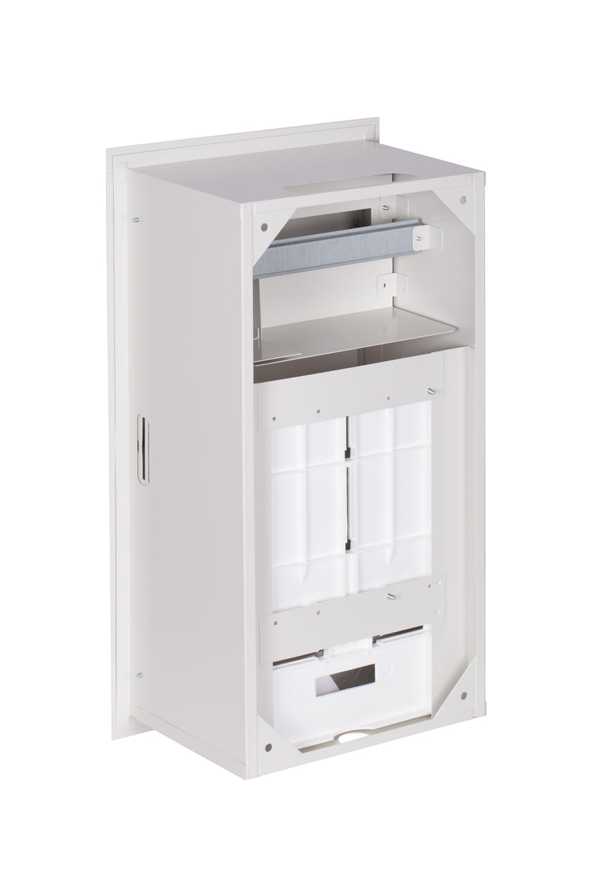 - Metalowa podtynkowa rozdzielnica typu RL, przeznaczona do zainstalowania 3-fazowego elektronicznego licznika oraz 12 zabezpieczeń